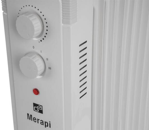 Výkonný, tichý, bezúdržbový, spolehlivý, bezpečný a efektivní – těchto šest slov dokonale vystihuje olejový radiátor G21 Merapi. Devítižebrový radiátor s vysokým výkonem a tichým chodem vyhřeje všechny prostory s nedostatečným nebo žádným vytápěním. Využijete jej například k přitápění v obytných prostorách včetně ložnic, k vyhřátí chaty a podobně.