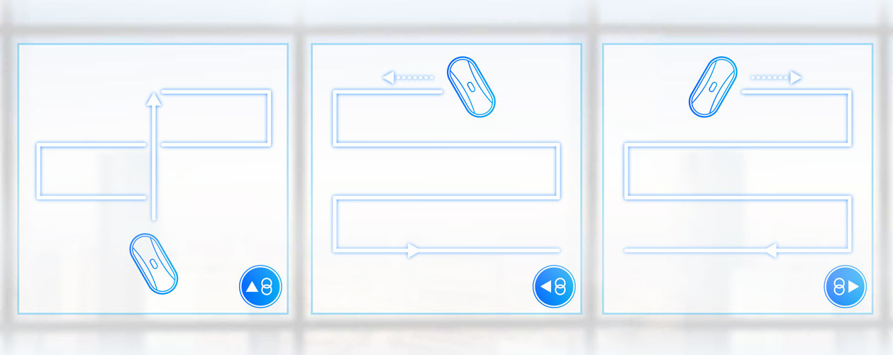 HOBOT 388 využívá unikátní systém pohybu, při kterém traverzuje po povrchu a precizně jej čistí bez zanechání otisků. HOBOT 388 k pohybu nepoužívá žádná přídavná kolečka, ale patentovaný systém dvou utěrek z mikrovlákna, které povrch perfektně čistí a zároveň leští. HOBOT 388 automaticky rozpozná velikost čištěného povrchu ve vodorovné i svislé poloze a zvládne vyčistit velké plochy o šířce až 5 m a výšce 6 m. Minimální velikost čištěného povrchu je 35 x 35 cm.