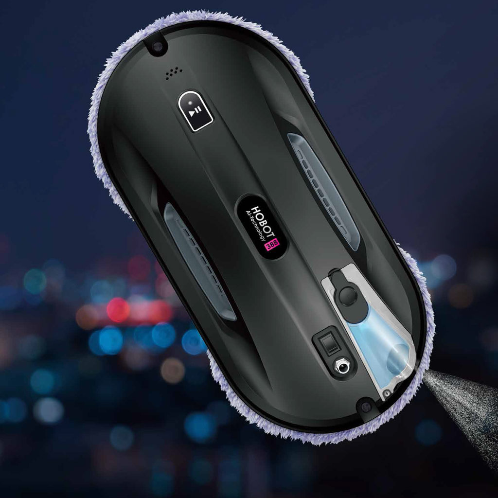 HOBOT 388 je elegantní robotický čistič oken čtvrté generace s automatickým rozprašovačem vody a vestavěným zásobníkem čistícího prostředku na okna. Robotický čistič oken HOBOT 388 je vybaven patentovaným ultrasonickým rozprašovačem vody, který vytváří 15 mikrometrů hustou mlhu přispívající k ještě účinnějšímu a dokonalému čištění oken. HOBOT 388 rychle a precizně vyčistí okna a různé druhy skleněných povrchů pomocí dvou speciálních utěrek z mikrovlákna ve svislé i vodorovné poloze. Díky systému Single-side můžete HOBOT 388 používat na různých tloušťkách skel a skleněných površích, jako jsou zrcadla, zdvojená okna a další. Vestavěná záložní UPS baterie chrání robota proti pádu při výpadku elektrické energie. Dále je HOBOT 388 vybaven GYRO senzorem, navigačním systémem s AI-Techonology S4.0 a novou funkcí dvojitého čistícího cyklu. Stylový a štíhlý HOBOT 388 je možné ovládat chytrým mobilním telefonem nebo dálkovým ovládáním.