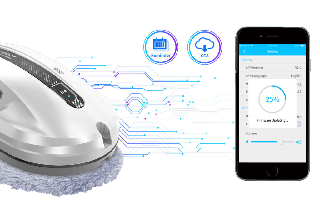 Pravidelnou aktualizací firmwaru robotického čističe HOBOT prostřednictvím bezdrátového připojení (OTA) získáte nejnovější funkce a vylepšení. HOBOT R3 vám navíc každé 3 měsíce zašle upozornění na čištění, které vám pomůže udržet vaše okna stále čistá.