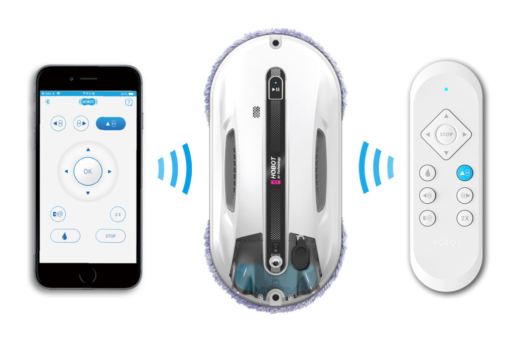 Robotický čistič oken HOBOT R3 může být ovládán pomocí chytrého telefonu přes Bluetooth. Aplikaci pro ovládání si jednoduše stáhnete zdarma na App store nebo Google Play. Aplikace je dostupná v mnoha jazycích včetně češtiny. Pokud nemáte chytrý telefon, nebo vám ovládání přes aplikaci nevyhovuje, můžete HOBOT ovládat pomocí dálkového ovladače.