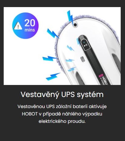 HOBOT R3 je robotický čistič oken páté generace s duální ultrasonickou tryskou a inovovaným systémem čištění oken a skel. Dvě ultrasonické trysky vytváří jemné částečky mlhy o hustotě 15 µm, což zajistí čištění bez zanéchání skvrn od vody. Čistič oken HOBOT R3 rotačním pohybem dvou utěrek z jemného mikrovlákna skleněný povrch perfektně čistí a zároveň leští. Díky systému Single-side může HOBOT R3 čistit skla o různé tloušťce a další skleněné povrchy, jako jsou okna, zrcadla, výlohy, skleněné dveře. Vestavěná záložní UPS baterie chrání robota proti pádu při výpadku elektrické energie. HOBOT R3 mluví česky a je možné hlasové pokyny přehrát vaším hlasem pomocí funkce kreativního hlasu. Stylový a štíhlý HOBOT R3 je možné ovládat chytrým mobilním telefonem nebo dálkovým ovládáním. Prostřednictvím vzdálené aktualizace OTA získáte nejnovější funkce a vylepšení. Jednoduché, bezpečné a chytré čištění oken bez námahy.