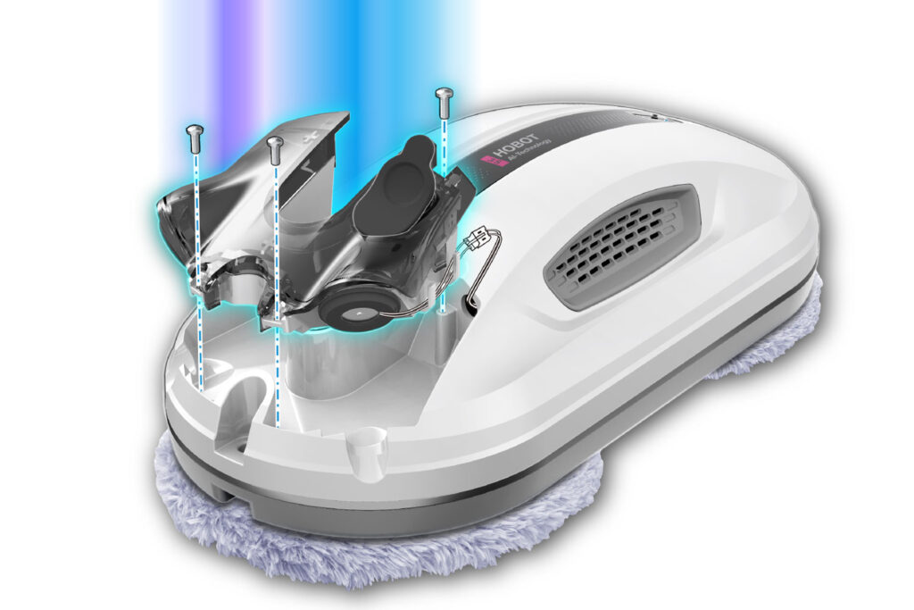 V případě, že je třeba vyměnit zanesenou ultrasonickou trysku, jednoduše vyměníte celý modul zásobníku na vodu uvolněním dvou šroubků a HOBOT bude opět fungovat jako nový. Velikost obsahu zásobníku je 30 ml, což vystačí na čištění plochy o rozměru 23 m2. Jako náplň používejte pouze destilovanou vodu nebo originální čistící přípravek značky HOBOT.