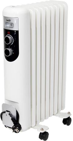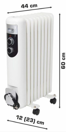 Olejový radiátor určený pro ohřívání vzduchu v interiérech, který má volitelné 3 stupně ohřevu 800 W / 1200 W / 2000 W. Má 9 článků, žeber naplněných olejem. Radiátor má ochranu proti přehřátí a převrhnutí. Je otestován tlakovou zkouškou. Díky regulaci termostatu se přístroj sám zapne, jakmile teplota vzduchu v místnosti klesne pod nastavenou hodnotu a jakmile teplota stoupne na požadovanou teplotu, radiátor se vypne. Je opatřen kolečky a držadly pro snadnou manipulaci a úchytem pro přívodní kabel.