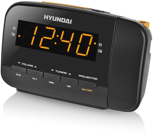 Radiobudík Hyundai RAC481PLLBO v černo-oranžovém provedení disponuje digitálním FM/AM tunerem a 2 nezávislými budíky.