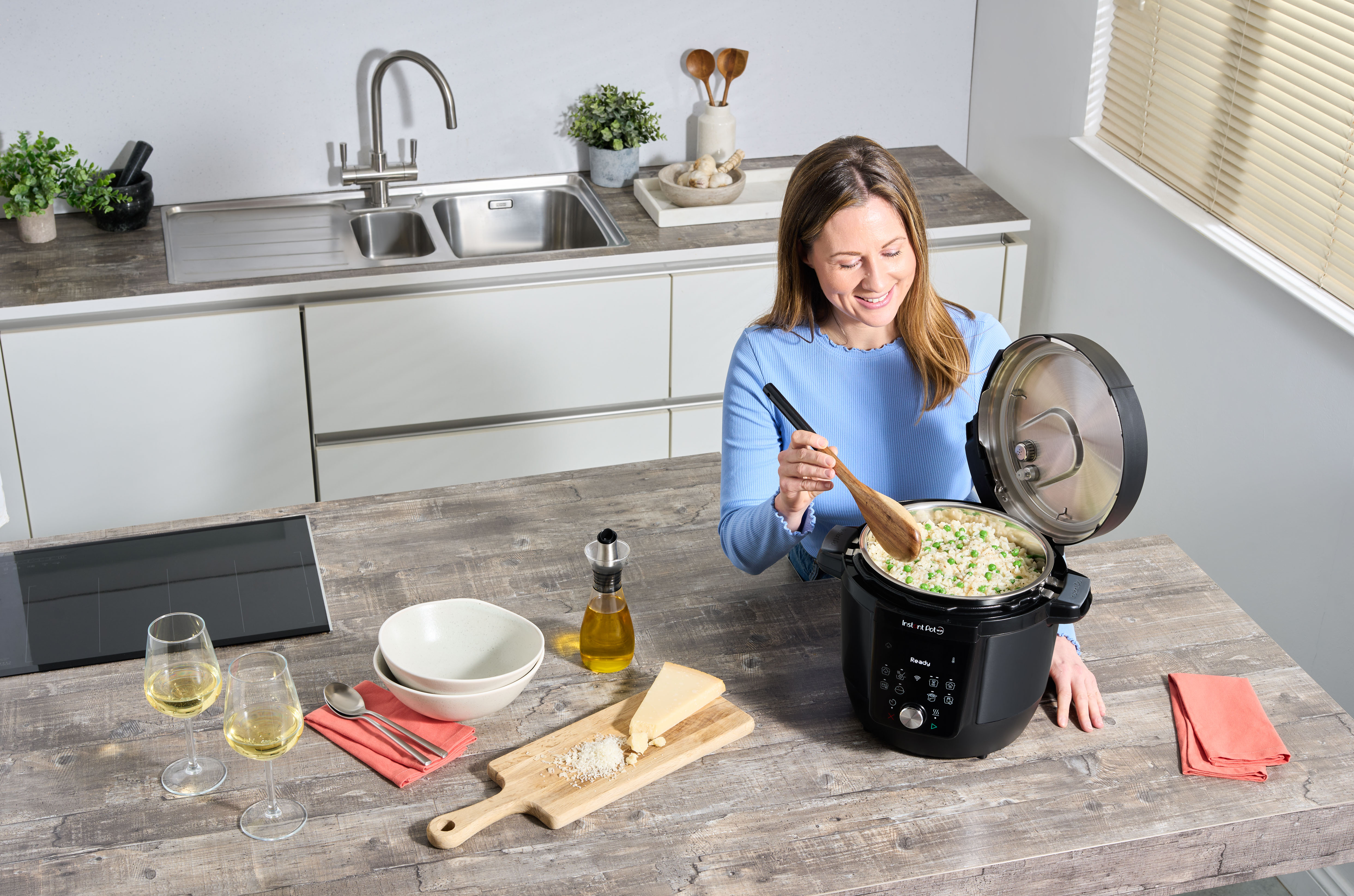 Instant Pot Plus vaří až o 70 % rychleji než běžné vaření na sporáku a zároveň zachovává více živin. Ideální pro rodiny, kde se počítá každé sousto – od prvních příkrmů až po rychlé večeře po náročném dni. Makaróny se sýrem za 4 minuty? Zeleninové chilli za 5? Pyré, pudinky a omáčky během chvilky? S Instant Pot Plus žádný problém.