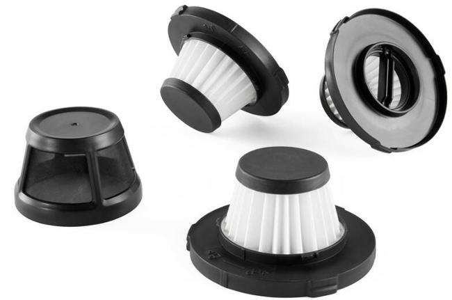 • 1 náhradní papírový filtr a filtr se sítkem - filtry nejsou trvalé, ale dají se opakovaně používat po vyčištění a omytí teplou vodou. Před opakovaným vložením a použitím musí schnout na vzduchu nejméně 24 hodin. Vyrobeno z papíru a plastu. Nelze mýt v myčce na nádobí.