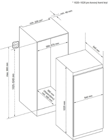 - Vestavná chladnička s mrazícím oddílem nahoře