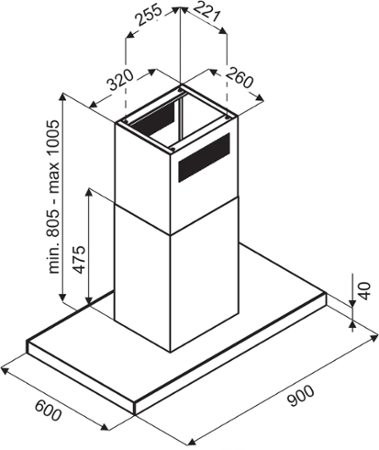 - Min. vzdálenost mezi odsavačem a elektrickou varnou deskou: 55 cm