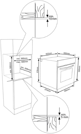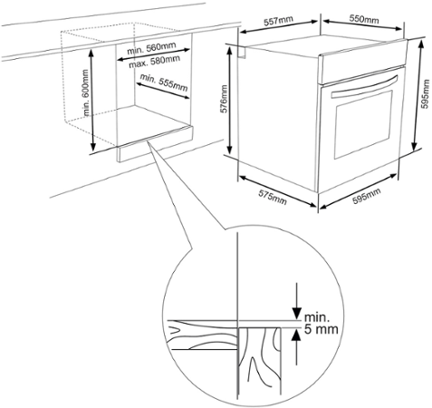 - Rozměry pro vestavbu (V x Š x H cm): min.60 x min.56 - max.58 x min.55