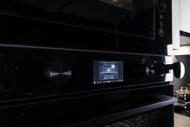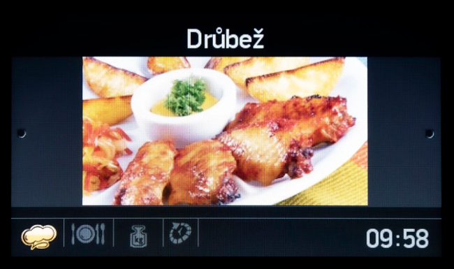 Přehledný plně grafický 4,3" barevný displej v češtině nebo slovenštině v kombinaci se sekvenčními kruhovými voliči umožňuje komfortní, rychlý a intuitivní pohyb v menu trouby.