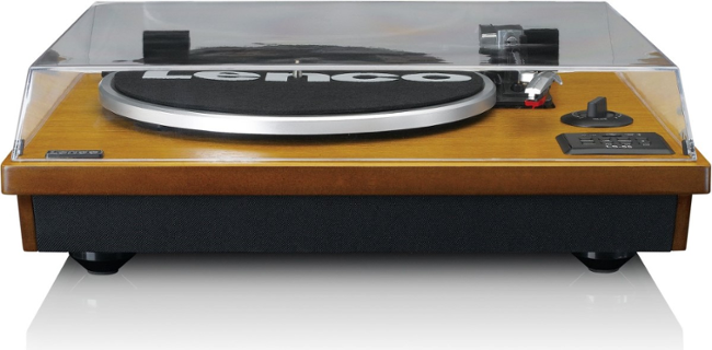 LS-55 je krásný dřevěný gramofon s vestavěnými stereo reproduktory.