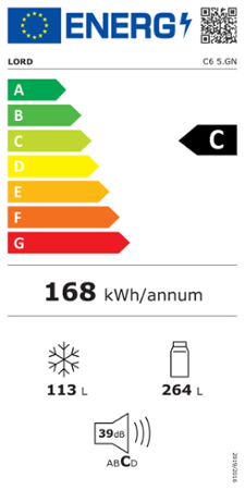 Volně stojící chladnička LORD C6 se se svou spotřebou 168 kWh řadí do energetické třídy C, které bylo dosaženo kvalitním BLDC invertorovým kompresorem a izolací pomocí vakuových panelů. Mezi výhody této kombinované lednice patří jednoduché dotykové ovládání a okamžitý přehled o teplotě v mrazicí i chladicí části, a to díky LCD displeji.