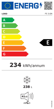LORD F5 3.GN spadá do energetické třídy E, přičemž jeho roční spotřeba činí pouze 197 kWh, což zajišťuje úsporu energie. Nabízí užitný objem 238 litrů, což je dostatečný prostor i pro větší rodiny. Přístroj navíc pracuje velmi tiše s hlučností pouhých 41 dB, což odpovídá emisní třídě hluku C. Díky širokému rozmezí klimatické třídy SN-T je možné mrazničku používat v prostředí s teplotou od +10 °C do +43 °C.