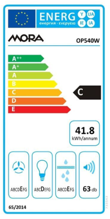 Podvěsný odsavač par v bílém provedení, se šířkou 50 cm je zařazen do energetické třídy C. Pracuje s výkonem maximálně 178 m³ / h. Levý a pravý odtah má průměr 100 mm nebo recirkulace a horní odtah 120 mm. Vybrat a nastavit si můžete jeden ze 6 odtahů a 3 rychlostí výkonu pomocí tlačítkového ovládání. Má přední skleněnou náběhovou lištu pro zachycování páry. Uvnitř odsavače se nacházejí 2 kovové filtry proti mastnotám a zpětná klapka. Tento digestoř Mora OP 540 W je vhodný především do panelových bytů. Maximální hlučnost dosahuje 63 dB. Pracovní plocha pod odsavačem je osvětlena pomocí 1 x 4 W LED žárovky. Další informace