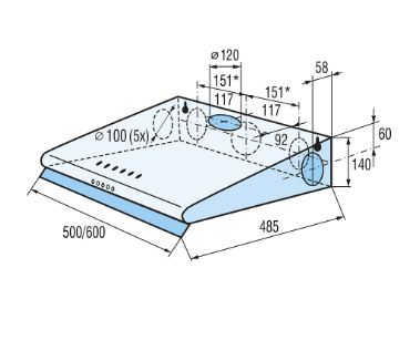 - Odtah boční levý a pravý, zadní střední, zadní levý a pravý ø 100 mm nebo recirkulace