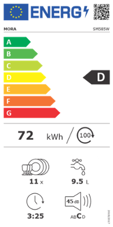 Volně stojící myčka nádobí Mora SM 585 W s novým výkonným invertorovým motorem s regulací otáček zajišťuje vysoký výkon s tichým provozem. V šířce 45 cm pojme až 11 jídelních souprav najednou. Mytí je velice tiché a úsporné, se spotřebou vody 9,5 l dosahuje hlučnosti 45 dB(A) re 1 pW. Disponuje 3 koši, z toho 1 příborovou zásuvkou, na které perfektně uspořádáte příbor, který se tak vzájemně nepoškrábe a dokonale vyschne. Se systémem AquaStop se nemusíte obávat nemilého překvapení v podobě vytopení. Přívodní hadice se totiž skládá ze dvou odolných vrstev a hned u vodovodního kohoutku je bezpečnostní ventil, který vám zaručí maximální ochranu vašeho domova před poničením vodou.