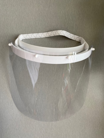Jedná se o průhledný štít z PET materiálu. Univerzální velikost díky pružné gumičce, která štít drží pevně na hlavě.