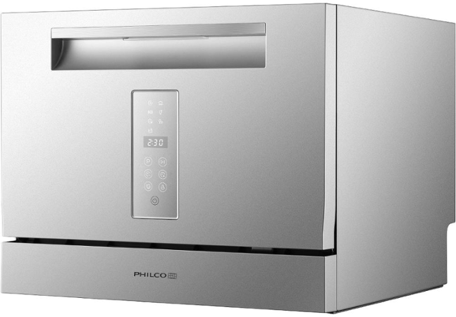 Stolní myčka nádobí Philco PDT 67 DF s přehledem umyje až 6 jídelních souprav. Nejlepší řešení pro domácnosti, kde z důvodu nedostatku místa není možné umístit klasickou myčku nádobí. Je vybavena 7 programy např. rychlé, EKO, sklo a intenzivní mytí i odloženým startem.