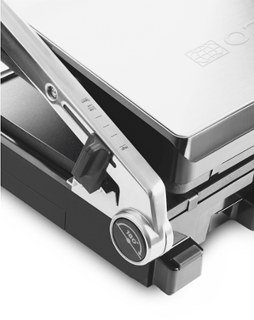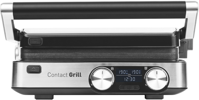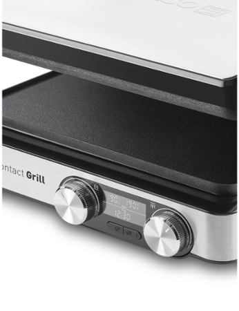 Na grilu oceníte i jeho vizuální stránku. Gril je vyroben v nerezovém designu a má dominantní ovládací panel s LED digitálním displejem. Mezi další vychytávky grilu patří pevné nastavení výšky horní grilovací desky, díky čemuž nerozmačkáte měkké potraviny, nebo výsuvný odkapávací tácek, který se vysouvá velmi prakticky na boku spotřebiče. Grilovací desky jsou potaženy nepřilnavou vrstvou Xylan, která zajistí ještě lepší výsledek grilování, je snadná na čištění a grilovací desky je možné umístit díky tomu do myčky. Do myčky je pak také možné vkládat odkapávací misku.