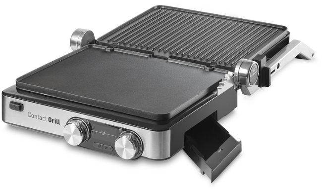 Opravdové grilování po celý rok s grilem Philco PHGR7000F. Budete zbožňovat krásné grilované linky na mase a zamilujete se do jednoduchosti celé přípravy i následném úklidu. Díky topnému tělesu přímo na grilovací desce využijete maximum z vytvořeného tepla a budete skutečně grilovat a to i pořádné fláky masa. Tento gril je možné používat buď v poloze kontaktního grilu nebo barbecue při rozložení, kdy získáte větší grilovací plochu. Navíc má každá deska nezávislé ovládání teploty a proto můžete na jedné grilovat a na druhé jen jídlo přihřívat.