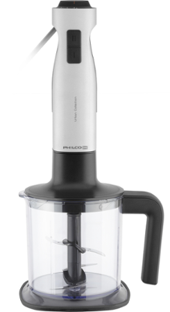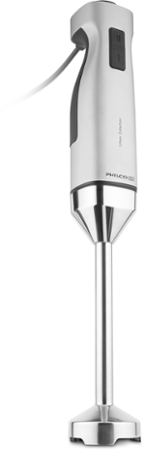 Toto je skutečný silák mezi ponornými mixéry. Díky kvalitnímu příslušenství zastane různé práce jako mixování, šlehání, sekání a to vždy s precizní kontrolou. Příkon 1000 W a 4 ostré čepele si poradí se všemi druhy čerstvých surovin – pro ovocné koktejly, saláty, bylinková pesta, omáčky, příkrmy, salsy či těsta. Luxusní čistý design z eloxovaného hliníku ho nutí mít nejen stále při ruce, ale i na očích.