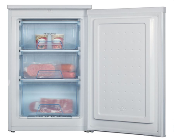 Jednodvéřový šuplíkový mrazák Philco PTF862 v energetické třídě A++, pracující v tichém chodu při minimální hlučnosti 39 dB.
