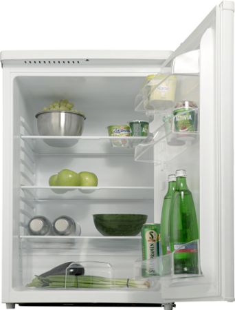 Jednodveřová chladnička je vybavena pevnými skleněnými policemi, které vytváří čistý a jednoduchý design. Svojí energetickou třídou A++ se řadí mezi nejúspornější. Objem chladničky je 131 l. Možnost otočení dveří.