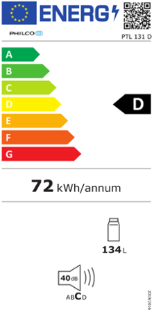 Monoklimatická chladnička, en. třída D, spotřeba 72 kWh/rok, objem 134 l, hlučnost 40 dB, bílá