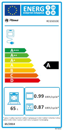 Romo RCG 5010E, Kombinovany sporak s plynovou varnou deskou vybaven objemnou troubou 65 l a 10 funkcemi trouby vcetne horkovzduchu, rychleho ohrevu, rozmrazovanani a grilu s energetickou tridou A.