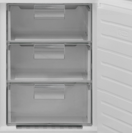 - 4 police z bezpečnostního skla, 3 přihrádky ve dveřích, 3 zásuvky v mrazničce