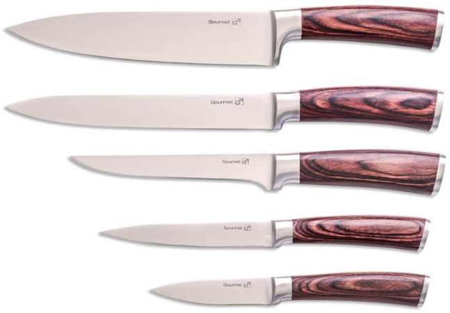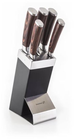Sada nožů Gourmet Dynamic + nerezový blok, 5 ks, materiál rukojeti dřevo, čepele nožů z kvalitní oceli 5CR15, součástí balení stojan na nože Další informace
