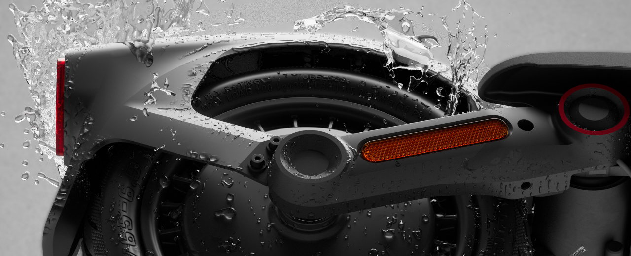 Ninebot F3 E se nyní může pochlubit vylepšenou odolností proti vodě IPX6. Nabízí robustní ochranu proti silným proudům vody a zajišťuje spolehlivý výkon i ve vlhkých podmínkách. Baterie má krytí IPX7.