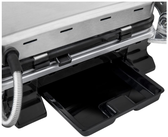 S příkonem 2100 W jsem připraven k akci během několika málo minut, stačí jen vložit potraviny, nastavit program a v případě manuálního ovládání mi můžete nastavit tři provozní polohy. Využívám vyjímatelné grilovací desky, které jsou vyrobené z vysoce kvalitního nepřilnavého materiálu pro rovnoměrné grilování. Ani si nemusíte lámat hlavu, co se stane s přebytečnou šťávou nebo tukem. Speciální konstrukce desek zajistí jejich shromáždění v odkapávacím tácku, který můžete kdykoli umýt v myčce na nádobí. Jelikož jsou grilovací desky nepřilnavé, jejich čištění je nesmírně snadné.