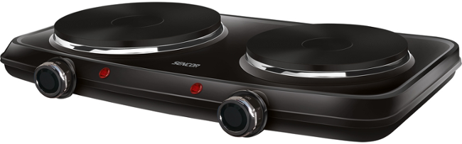Dvouplotýnkový vařič, regulovatelný termostat, 2 kontrolky, ochrana proti přehřátí, černá Další informace