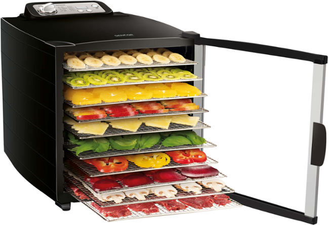 • Průhledná dvířka a podnosy umožňují okamžitou vizuální kontrolu nad stavem sušení