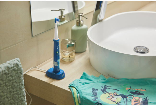Dětský elektrický zubní kartáček, 2 programy, až 26000 stěrů za minutu, LED ukazatel stavu baterie, chytrý časovač, nízká spotřeba