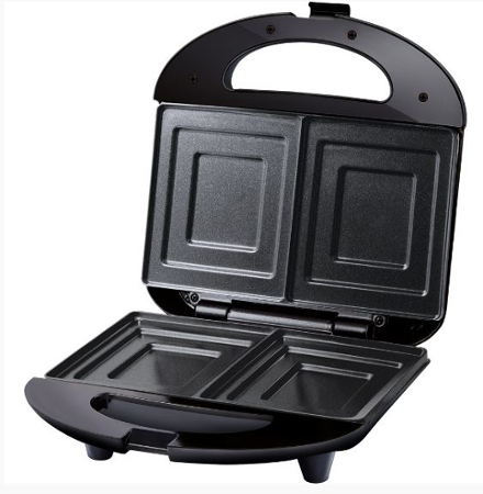 Toustovač, nerezové provedení, 2 čtvercové sendviče, regulace teploty, nepřilnavý povrch, izolovaná rukojeť, protiskluzové nožky, tepelná pojistka