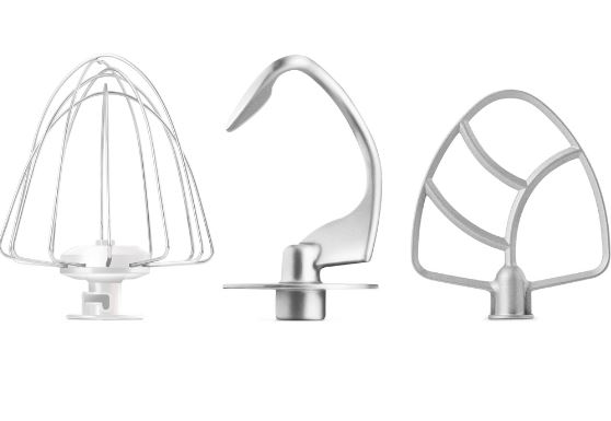 - 3 nástavce na hnětení, šlehání a lehká těsta - hnětací hák, míchací metla ve tvaru písmene A, šlehací balónová metla