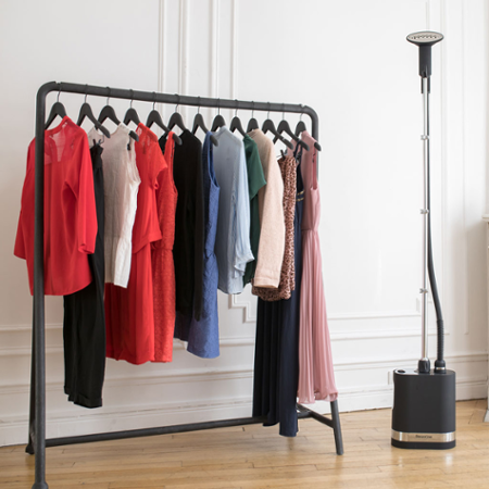 Manipulaci s napařovačem oděvů SteamOne usnadňují kolečka. Ergonomická rukojeť s bohatou sadou příslušenství zajistí dokonalé žehlení oděvů.