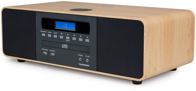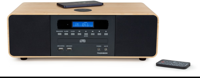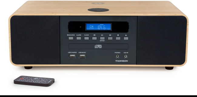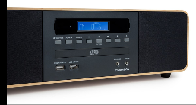 Mikrosystém Thomson MIC 202IBT na první pohled zaujme svým elegantním designem. Na přední straně se nachází přehledné tlačítkové ovládání a podsvícený displej, díky kterému se vždy dozvíte informace o naladěné rádiové stanici na FM frekvenci nebo o přehrávaných skladbách.