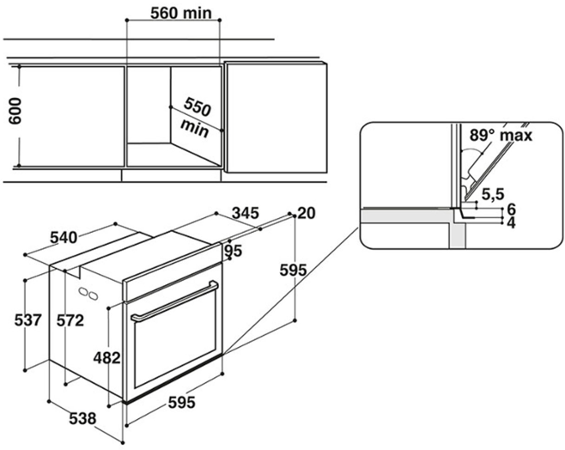 - Příslušenství trouby: Výsuvné kolejničky (1 úroveň), 1 rošt, 1 mělký a hluboký plech