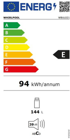 Skvělá energetická účinnost. Díky energetické třídě E vám tento spotřebič Whirlpool umožní využívat skvělý výkon i nižší spotřebu energie.