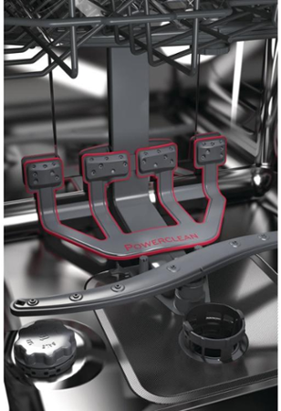 Technologie PowerClean je ideální pro silně znečištěné nádobí. Inteligentní senzory vyhodnotí stupeň znečištění nádobí a automaticky podle toho uzpůsobí tlak vody ve výkonných tryskách umístěných v zadní části myčky. Myčka nabízí také třetí příborovou zásuvku či funkci odložený start.